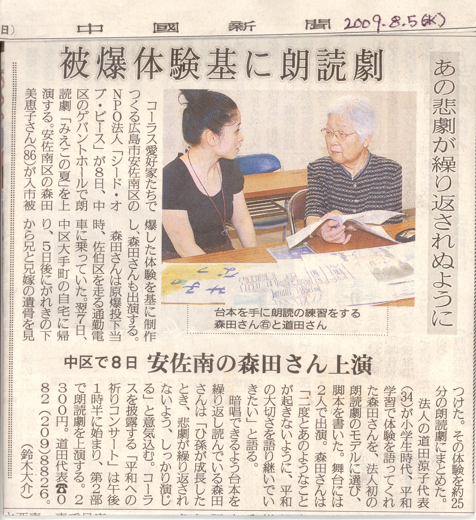・「みえこの夏」森田美恵子さん被爆体験朗読劇(2008年~2009年)