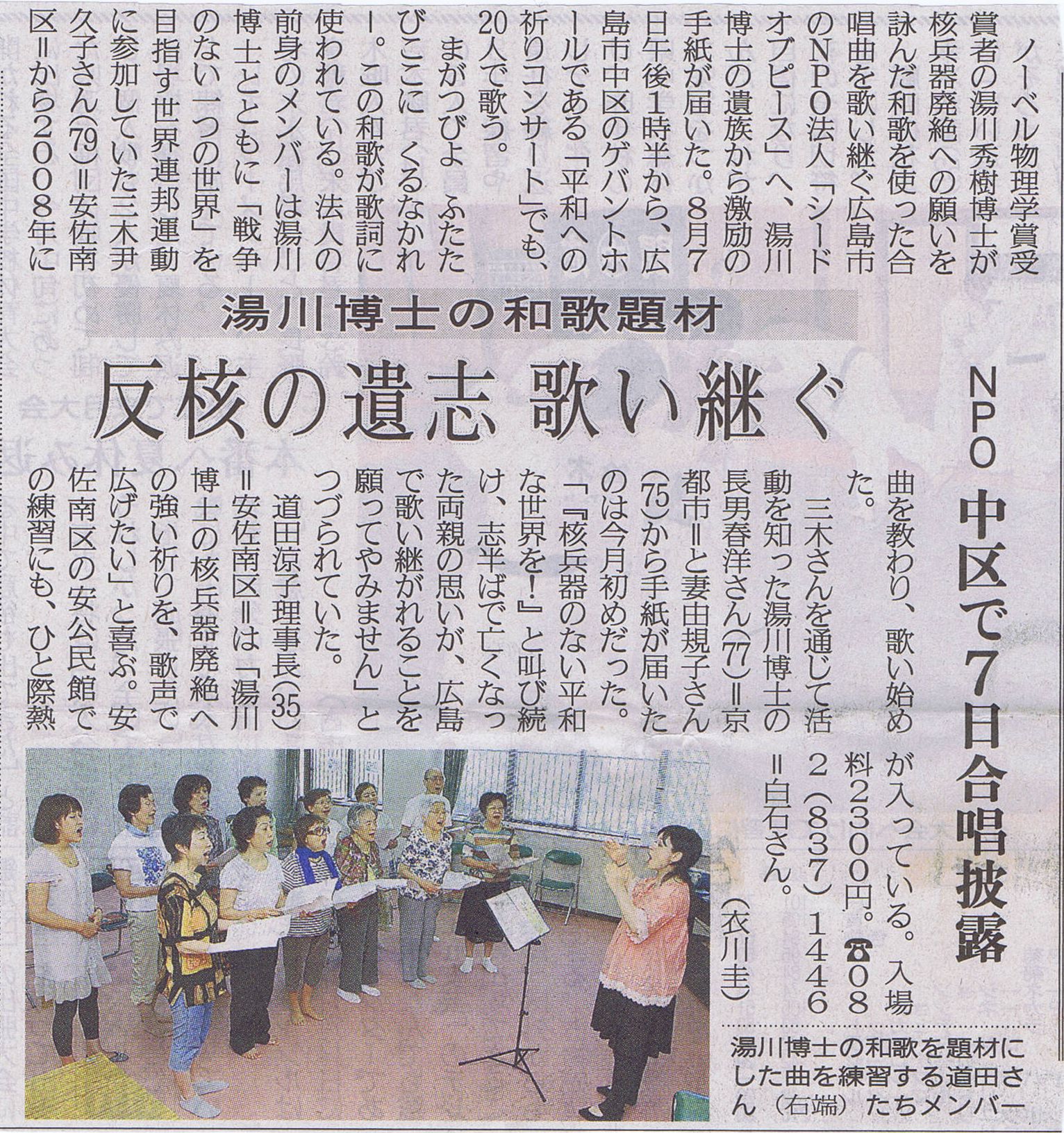 2016年8月 「平和への祈りコンサートvol.9~みんなで奏でよう!未来へのハーモニー~」西区民文化センタースタジオ