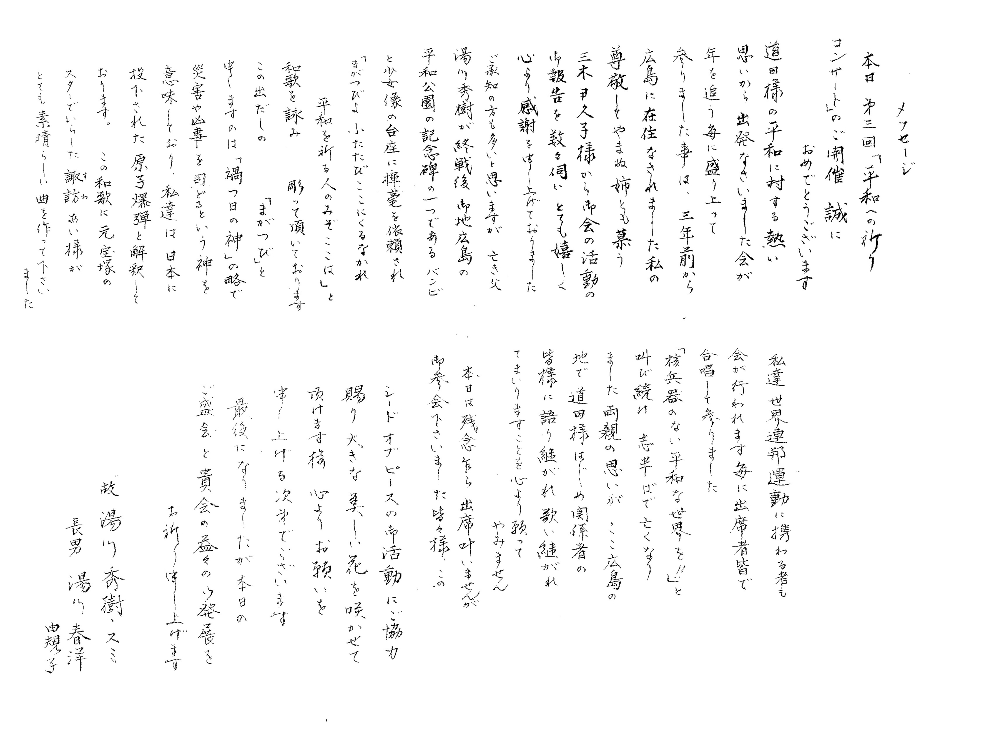 ノーベル物理学賞受賞者で、核廃絶運動に携わった湯川秀樹博士(1907~81)が平和を願って残した短歌に、京都市在住の元タカラジェンヌ、諏訪あいさんが曲をつけられました。